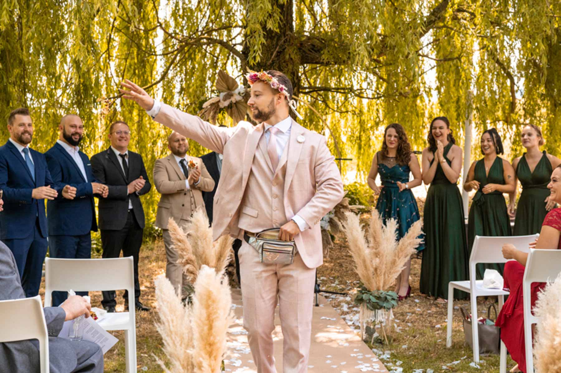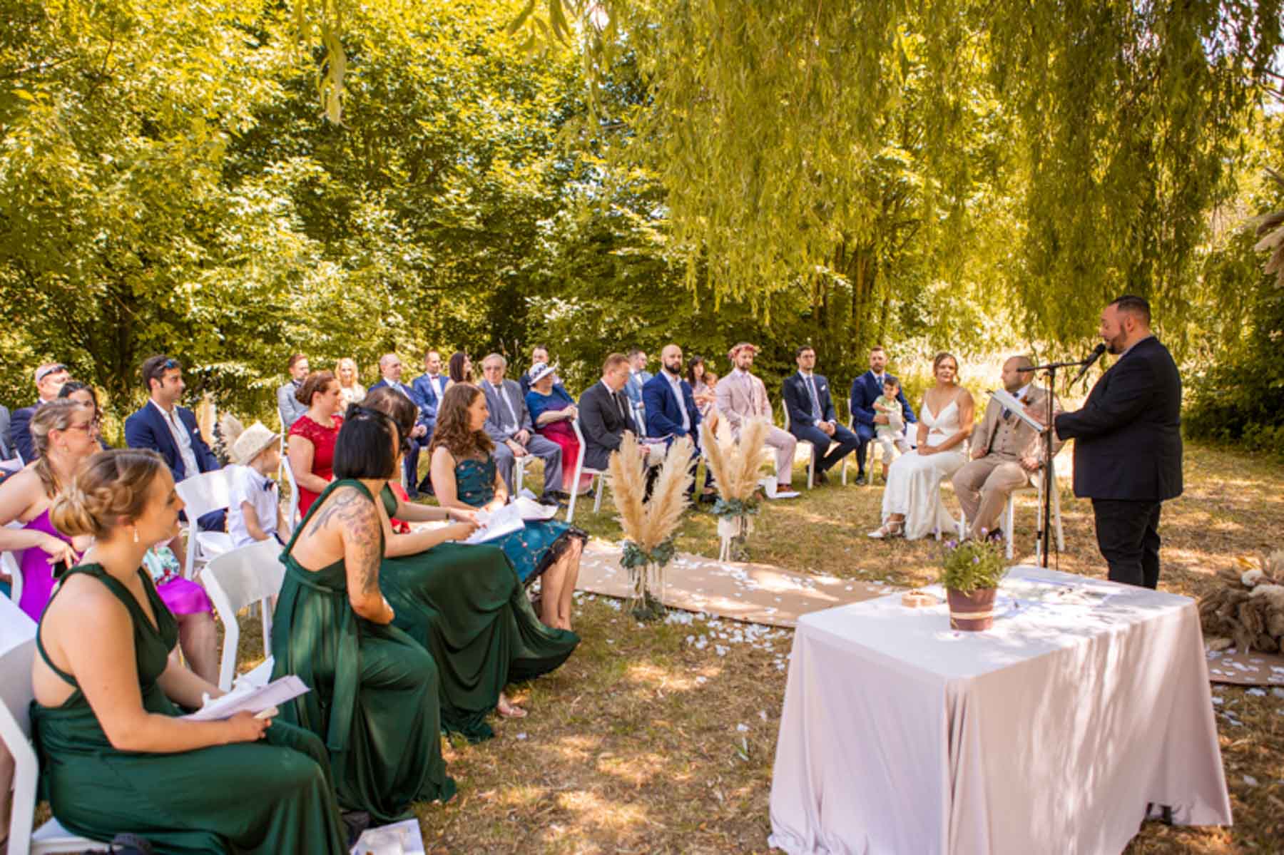 Freie Trauung unter der Trauerweide -Hochzeit in der Hydrogärtnerei Höfer