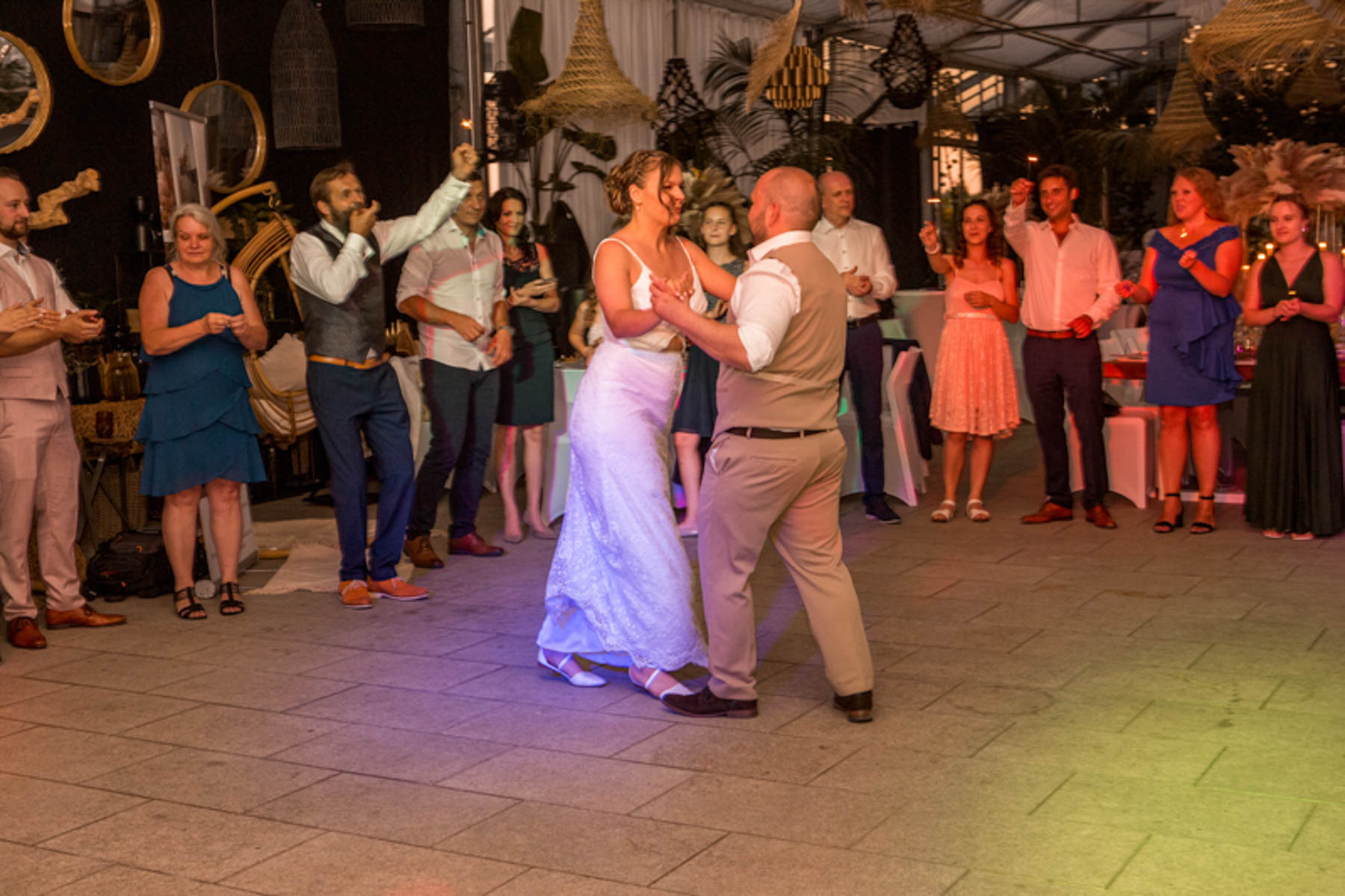 Zur Hochzeitstorte ging es zurück in die Gärtnerei. Diese hatte Tanja am Vortag selbst gebacken, und sie war ein voller Erfolg. Mit leckerem Grillbuffet, einem unterhaltsamen Abendprogramm und einem romantischen Hochzeitstanz endete die Sommerhochzeit in Eislingen in ausgelassener Stimmung.